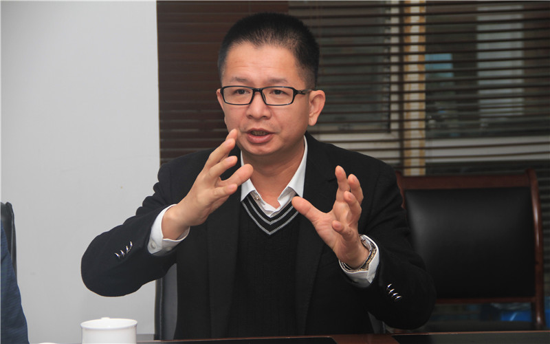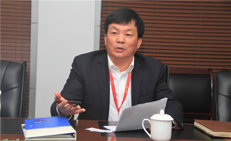 图为寻找中国制造隐形冠军丛书编委会主编陈良财介绍调研工作概况