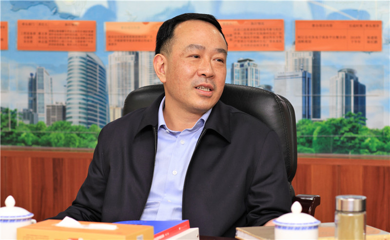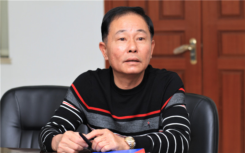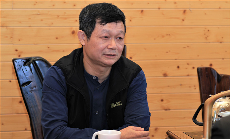 图为公司董事长蔡天志介绍企业发展情况
