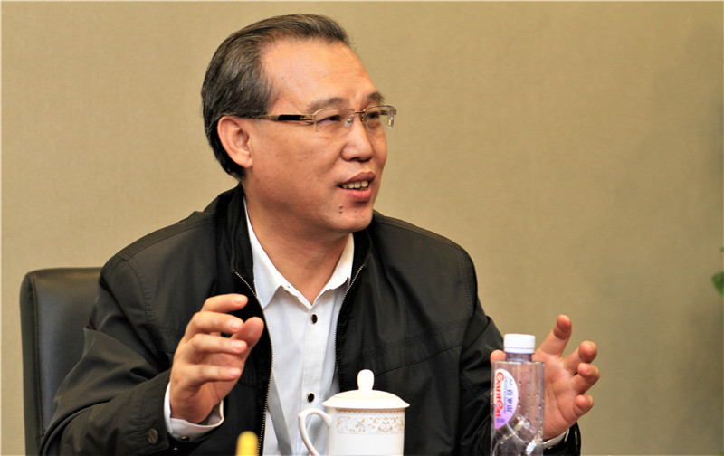 图为昌龙汽车总经理唐有朝介绍企业发展现状