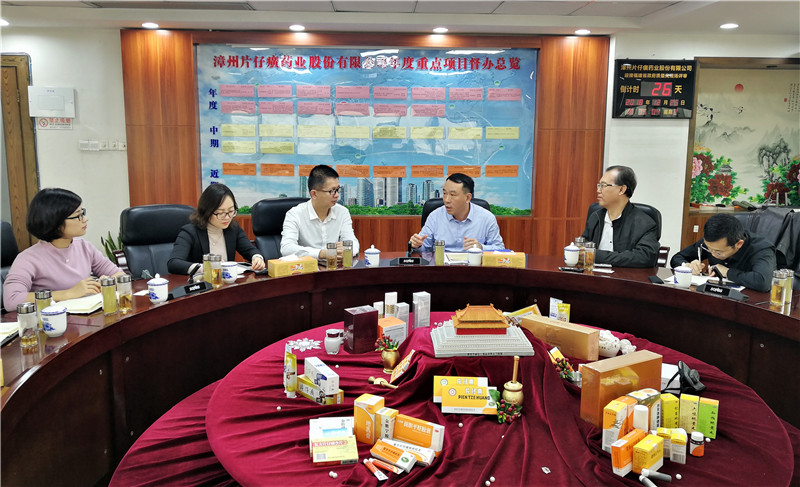 图为编委会工作组在片仔癀考察调研