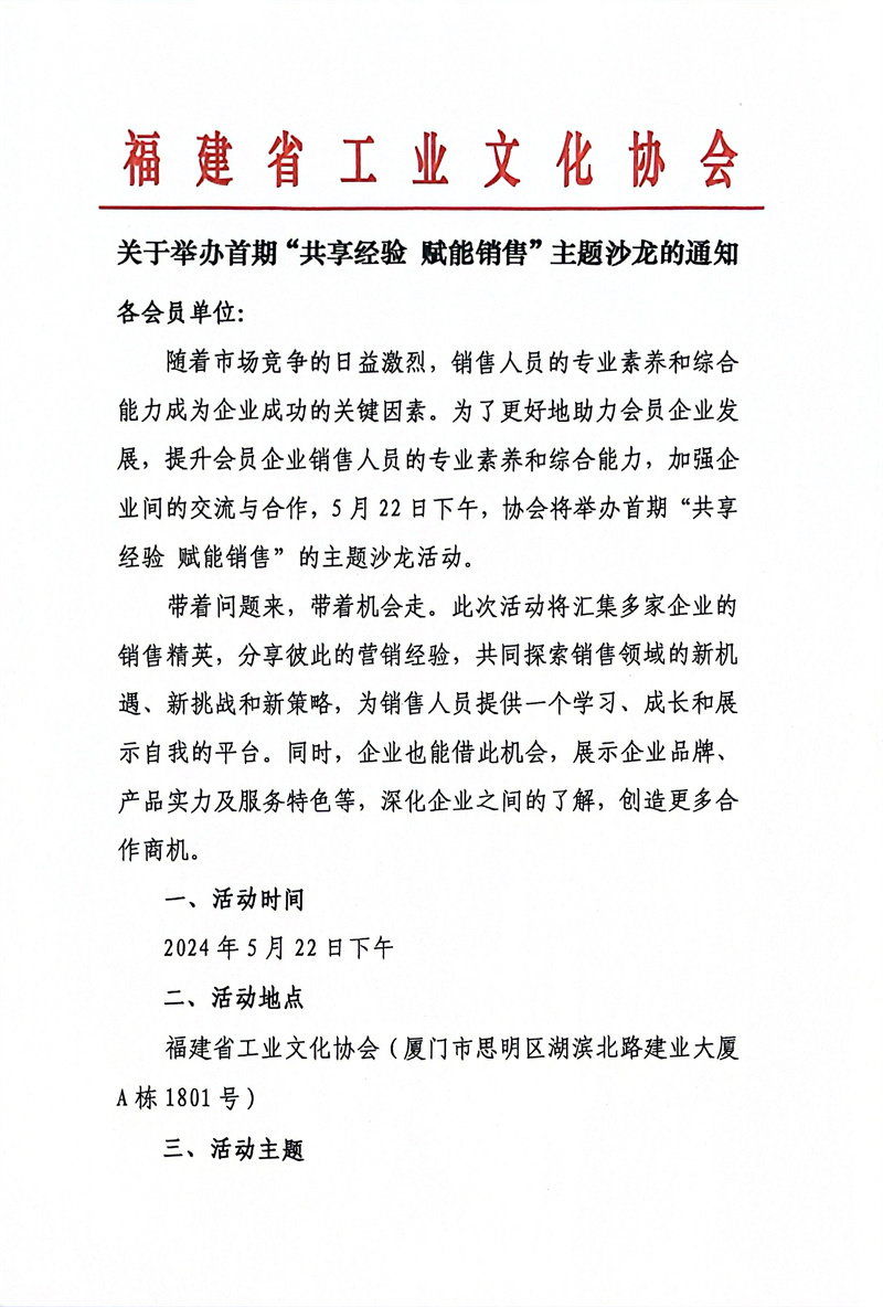 关于举办首期“共享经验 赋能销售”主题沙龙的通知