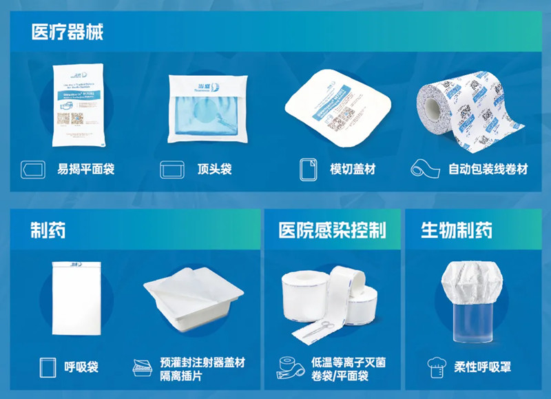 在展会现场,公司重点呈现了闪蒸法非织造材料在医用灭菌包装方面的成果,主要有M7001,M8001,M4201等系列产品,广泛应用于灭菌袋、盖材与包装卷材等领域,能够有效为医疗器械产品全生命周期提供保护。这些材料不仅具备优异的阻菌性和透气性,还能在确保灭菌效果的同时,维持材料结构的完整性。