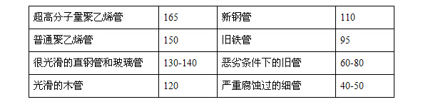 水在管道内输运时因摩阻引起的水头损失(压降)可用国际上通用的海澄-威廉姆斯(Hazen-Williams)公式计算: