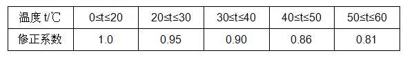 在输送20℃以上介质时,管材壁厚应进行修正,修正方法为规格表中的壁厚除以表6中所示温度修正系数