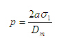 式中p:工作压力 MPa t:管道壁厚 mm Dm:管道中径 mm